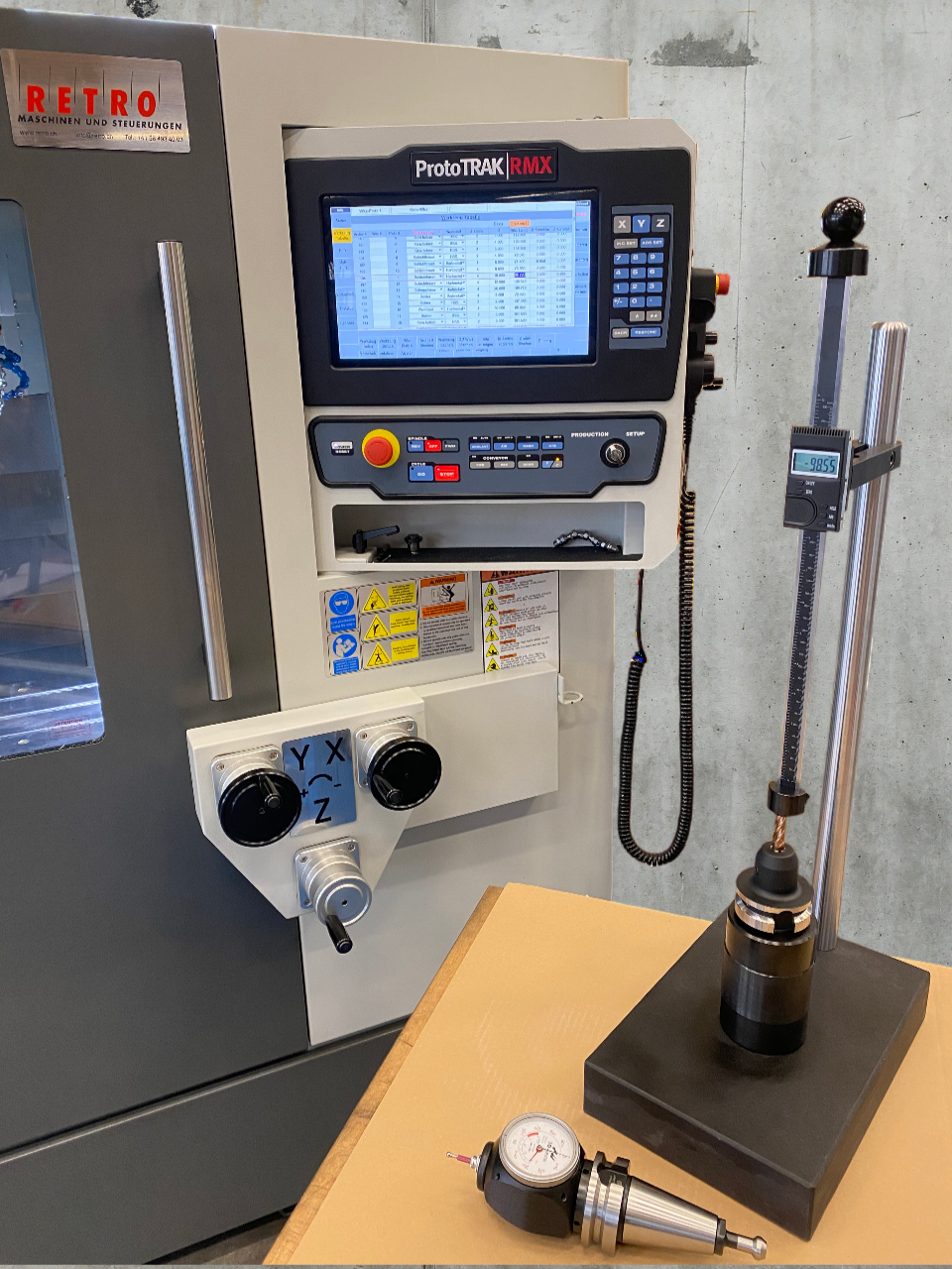 Dieses Werkzeugvoreinstellgerät erspart Ihnen viel Zeit beim Erstellen der Werkzeugarchivtabelle an den Prototrak-RMX-Steuerungen. Die Werkzeuglänge kann einfach abgelesen und direkt in die Tabelle der Steuerung eingetragen werden.